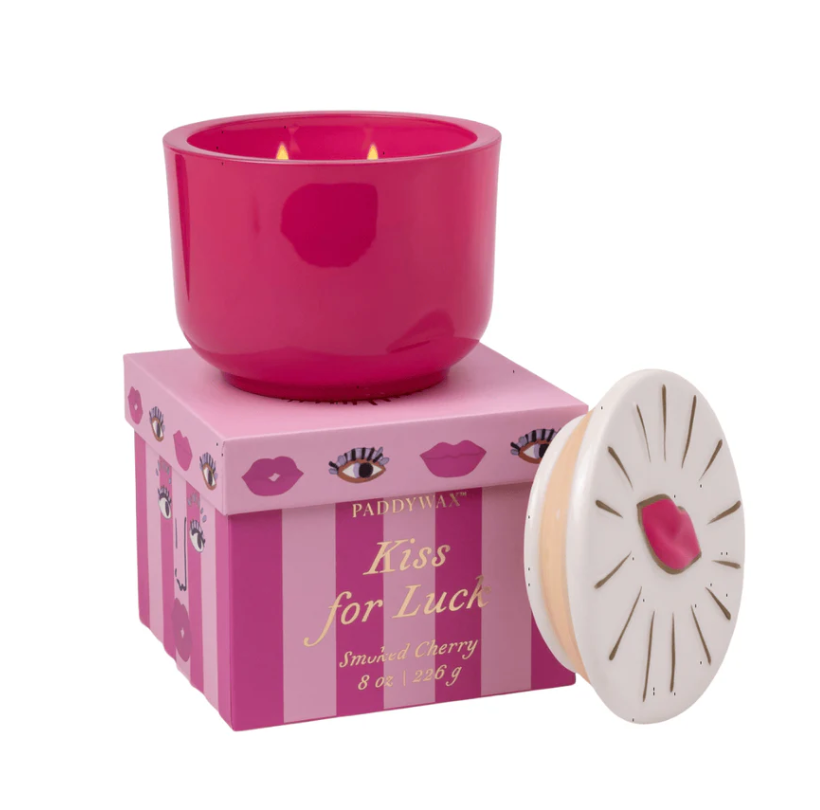 Kiss for Luck Smoked Cherry 8 oz Glass Candle with Ceramic Lid Seal it with...