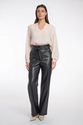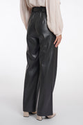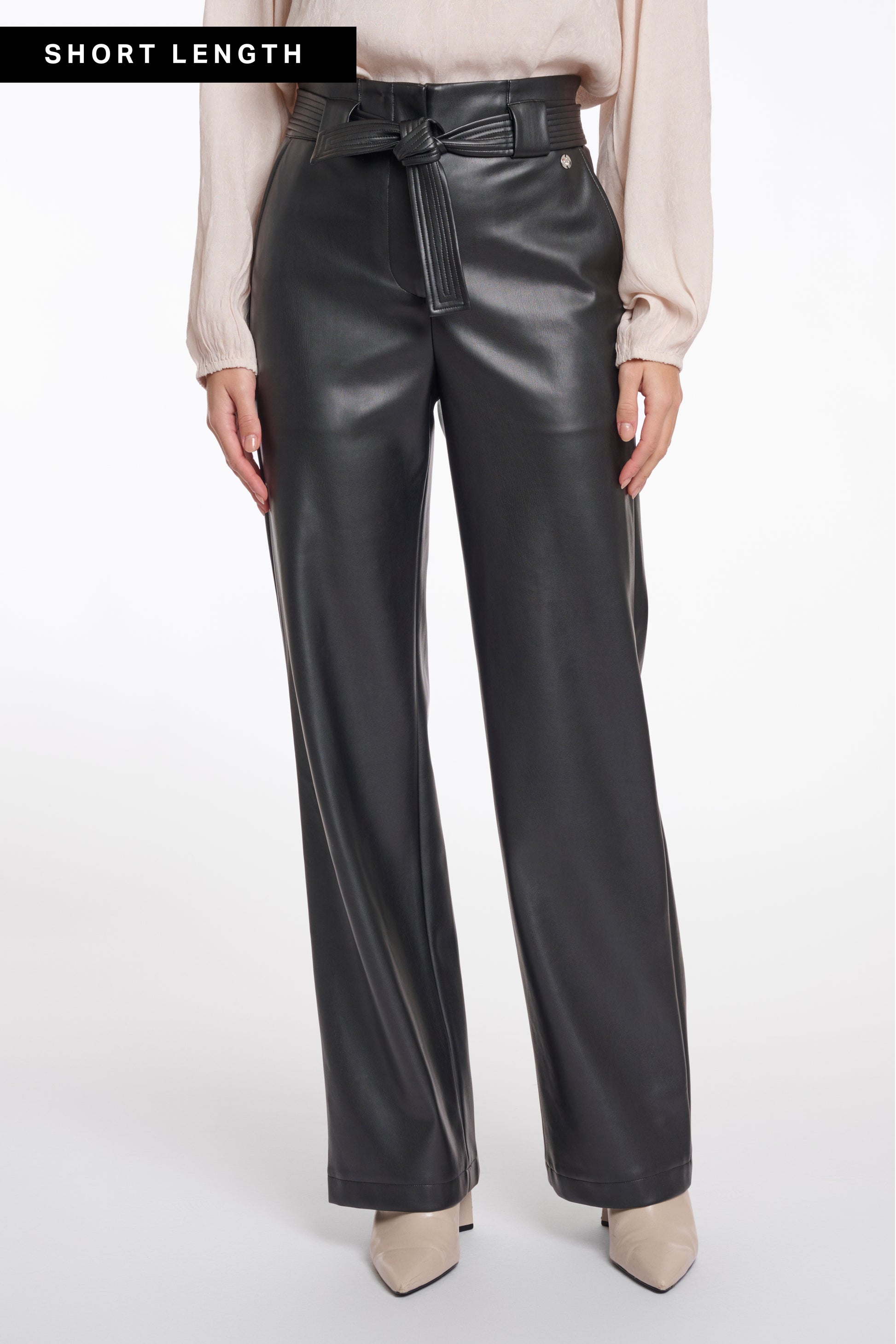 Crafted in sleek black faux leather, these Annemie trousers combine style and comfort effortlessly. Featuring a regular length and straight leg design, they offer a flattering silhouette for any occasion. Practical side pockets and a front zip add functionality, while the elasticated back waist ensures a perfect fit. Complete with a stitched belt for a polished finish, these trousers are ideal for elevating your everyday wardrobe with a sophisticated edge.