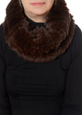 Dark Brown Knitted Real Rex Rabbit Fur Single Snood Scarf