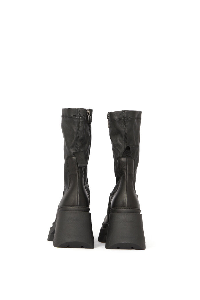 Step into boho chic with these Lofina boots. Crafted from supple black stretch leather, this calf-length style combines sophisticated design with everyday wearability. The convenient back zip ensures easy on-and-off dressing, while the chunky heeled sole delivers both stability and contemporary style. Inside, a cushioned sole cradles your foot in cloud-like comfort, transforming every step into a pleasure. Perfect for elevating your wardrobe with a versatile piece that doesn't compromise on comfort.