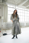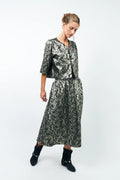 The Catalina midi skirt is a statement piece, perfect for autumn celebrations. The exclusive jacquard-woven fabric with a metallic effect adds a luxurious touch, while the subtle A-line silhouette creates a flattering drape. Pair it with a simple knit or shirt for a more relaxed look.