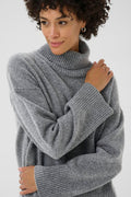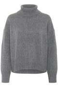 Introducing the Corina Grey Melange Pullover—a sophisticated wool blend knit that effortlessly elevates your everyday wardrobe. This relaxed-fit roll-neck features a luxuriously high collar for added warmth and dropped shoulders that create a contemporary, flattering silhouette. Wide ribbed trims at the sleeves and hem provide refined structure and durability. Perfect paired with jeans for casual elegance or wool trousers for polished sophistication, this versatile piece becomes an essential layering staple. The soft grey melange tone complements any palette, making it a timeless investment piece you'll reach for season after season.