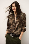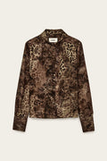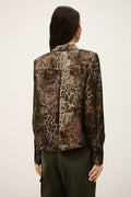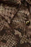 Elevate your wardrobe with the Cornelia Snake Print Shirt, a sophisticated piece that effortlessly blends edge with elegance. Crafted from soft, lightweight fabric, this designer button-down features a striking brownish snake print that adds instant visual interest to any outfit. Structured shoulder pads deliver a polished silhouette, while the classic collar and full button front ensure versatile styling for both professional and casual occasions. Perfect for those who appreciate statement pieces with understated comfort.