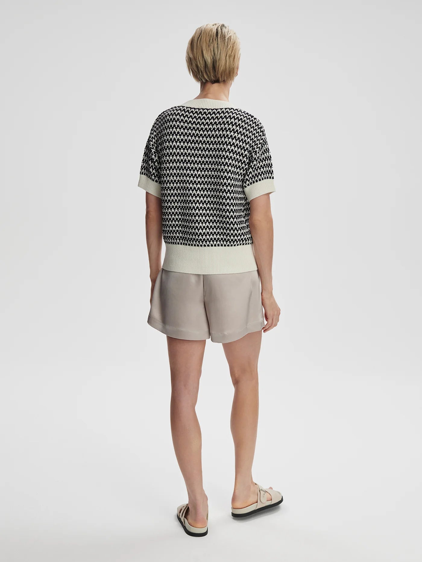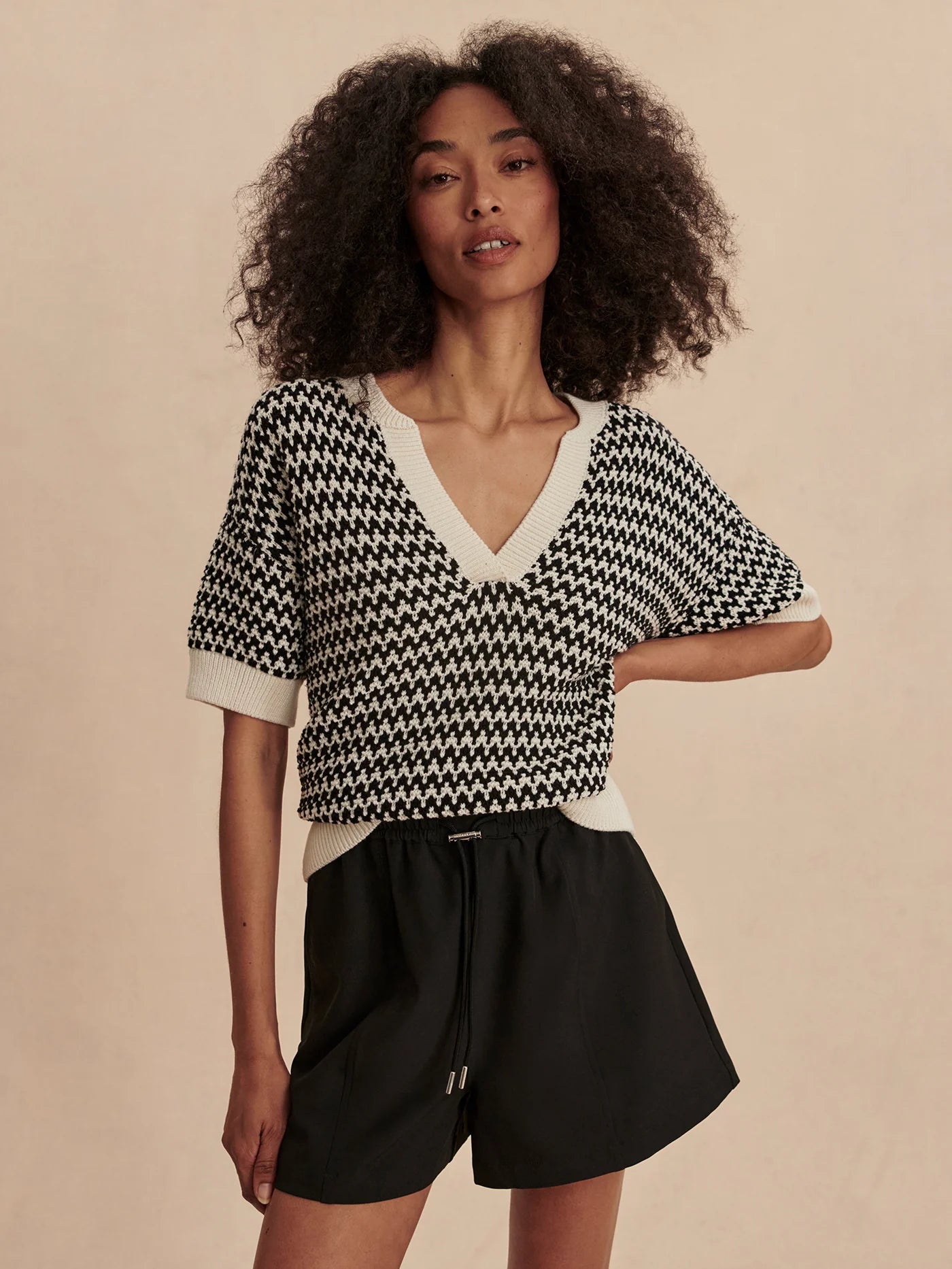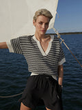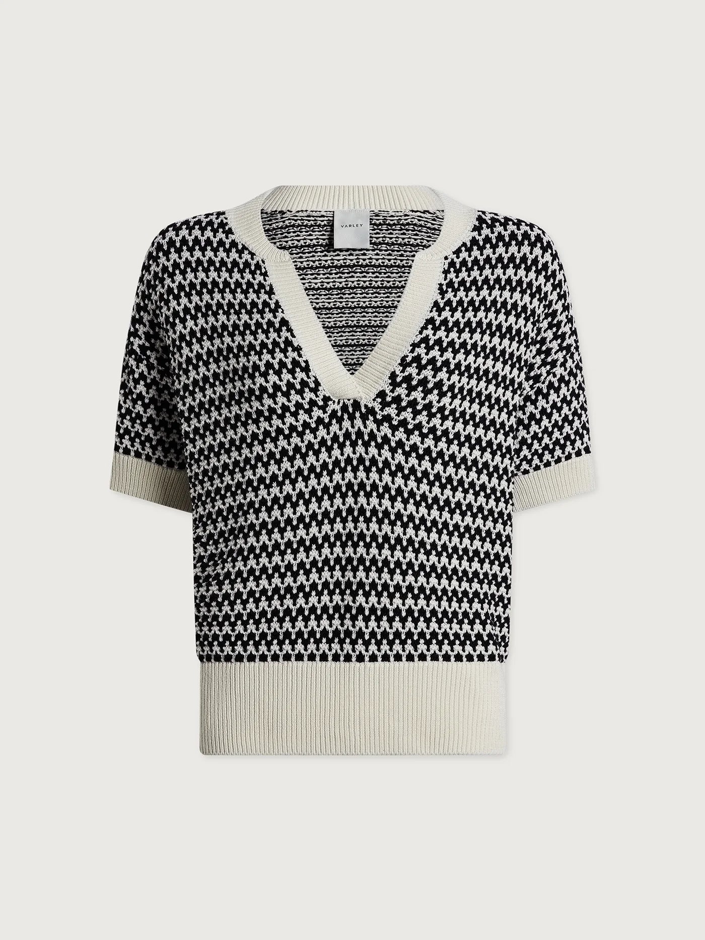 Elevate your wardrobe with the Dora knit top by designer Varley. This sophisticated piece features a relaxed fit with drop shoulders and a distinctive deep V-neckline inspired by classic Polo collars. Crafted from 100% cotton in elegant Egret, the textured two-color stitch adds dimension and visual interest. Perfect for effortless style that transitions seamlessly from casual to refined occasions.