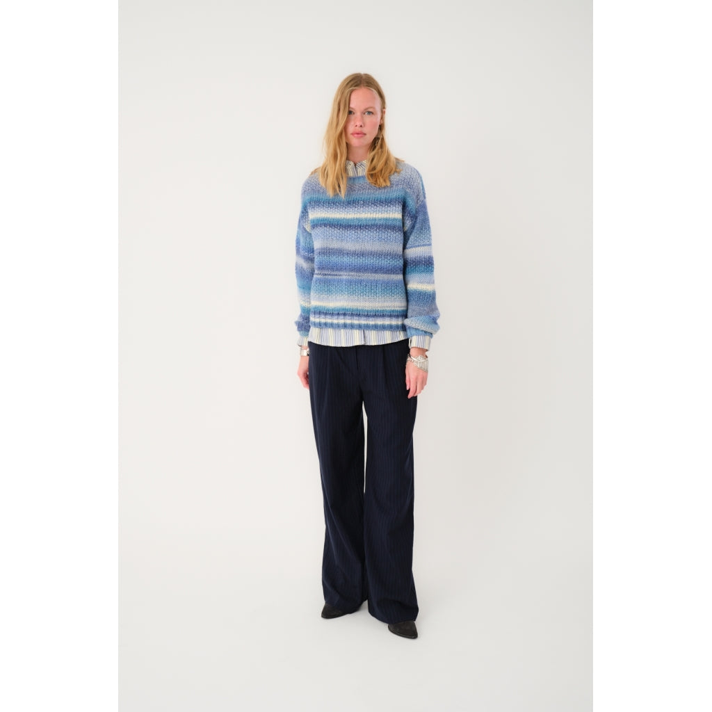 Stay warm in style with the Fairhaven Light Blue Sweater from Lolly's Laundry. Designed with a calm colour palette and eye-catching texture. Its classic neckline, ribbed edges, and relaxed fit make it versatile for both casual and formal occasions. Perfect for layering on cool days!