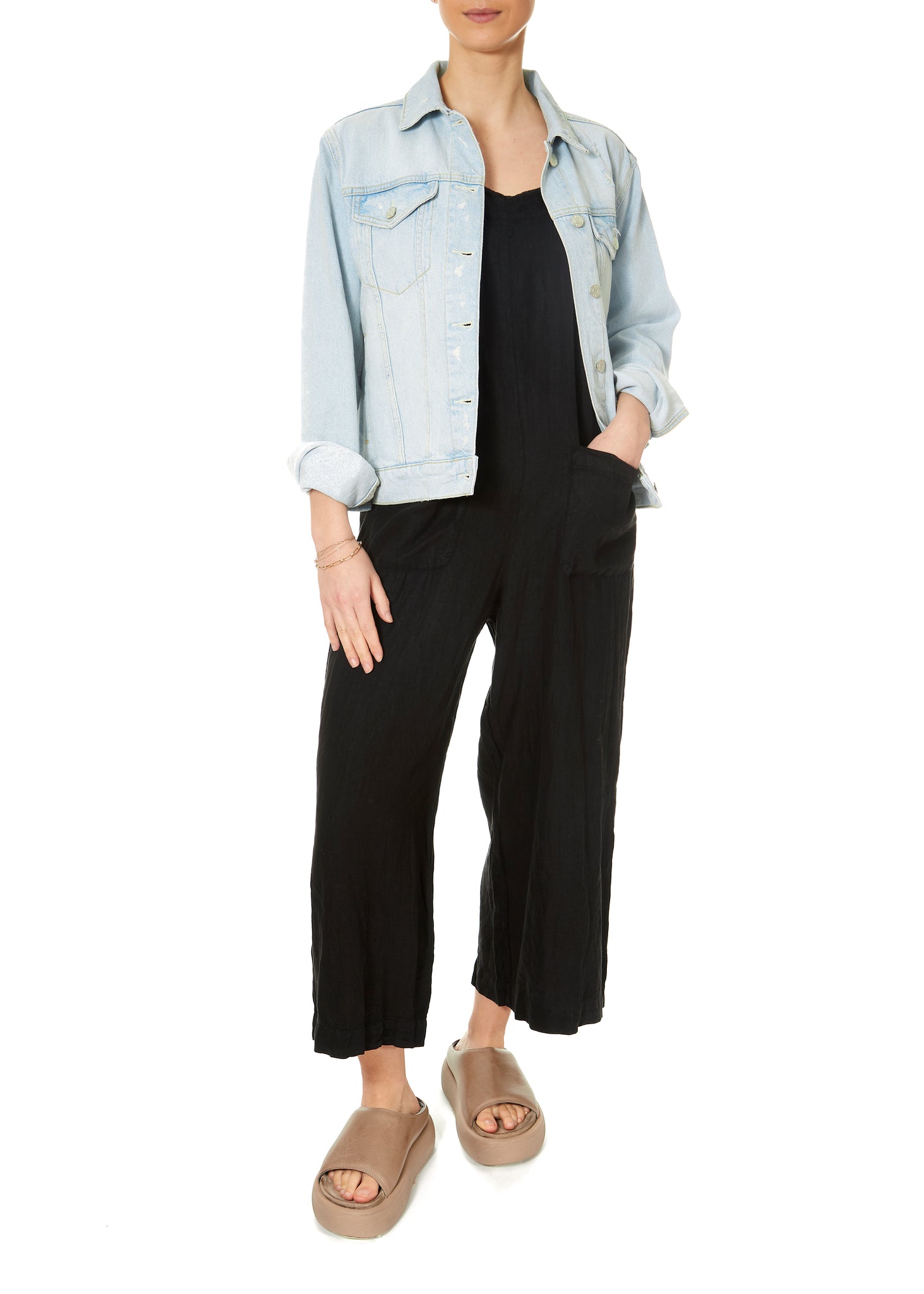 Isabel Black Linen Dungarees
