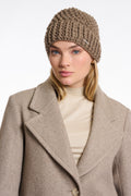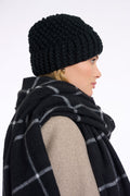 The Kevina Knitted Hat offers playful versatility with its removable faux fur pom pom secured by a convenient snap button. Crafted with a cozy popcorn knit pattern and finished with a ribbed hem, this two-in-one design lets you switch effortlessly between a stylish pom pom hat and a classic beanie. Perfect for pairing with coats and boots, it brings warmth and adaptable style to your cold-weather wardrobe.