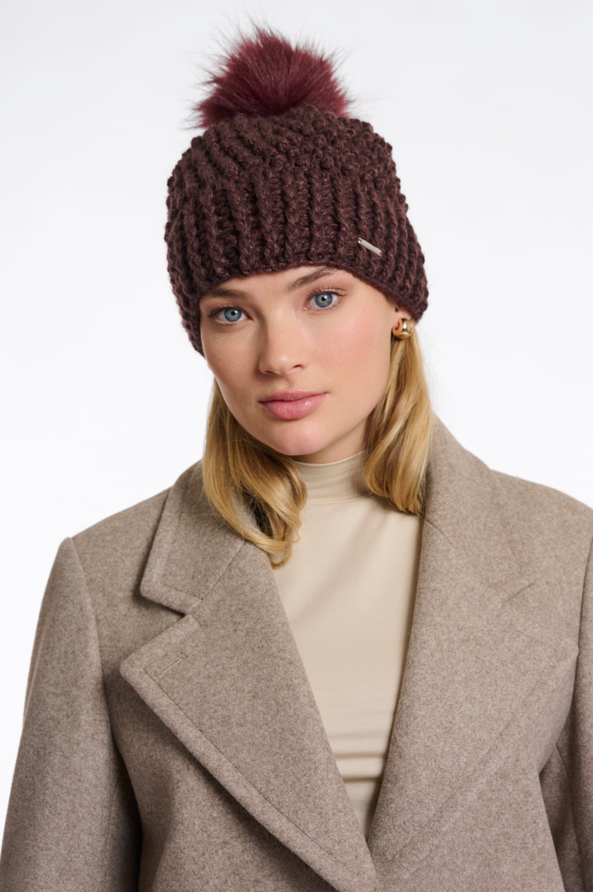 Kevina Knitted Hat with Detachable Faux Fur PomPom