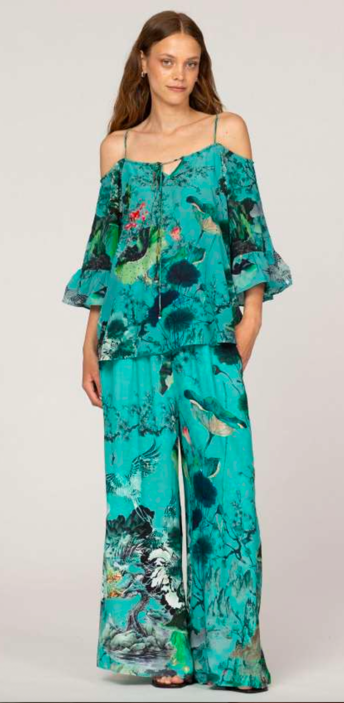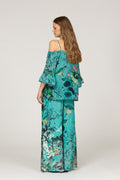 Larch Rapa Flora Silk Trousers combine comfort with style. Crafted from breathable silk, they feature a relaxed, flowing silhouette perfect for warm weather. The comfortable waistband and practical pockets make them ideal for everyday wear, while the dark turquoise base with an intricate dark blue botanical print adds visual interest. Whether you're dressing up or keeping it casual, these versatile trousers deliver both sophistication and ease.