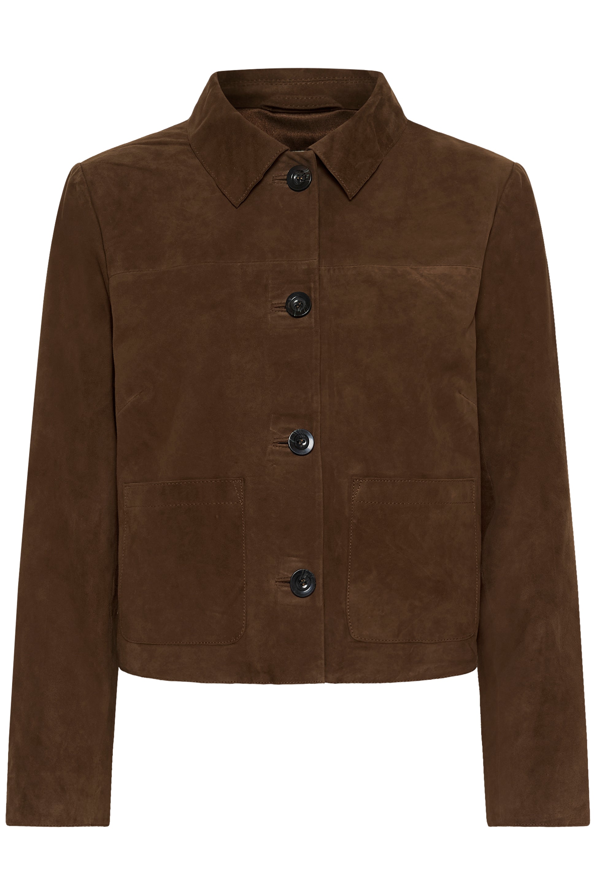 The Nema Carafe Brown Suede Jacket by Part Two is a sophisticated essential for effortless style. Crafted from sumptuous suede in a warm brown tone, this short jacket features a classic collar, practical front pockets, and a button closure for easy wear. The relaxed loose fit provides comfort and movement, making it ideal for layering over dresses, knitwear, or casual basics. Whether you're heading to the office or out for the weekend, this versatile piece adds polish and texture to any outfit.