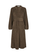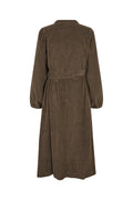 The Paris Dark Mokka Midi Dress combines timeless elegance with everyday comfort. Crafted from soft corduroy, it features a flattering V-neckline with delicate pleats and long sleeves with elasticated cuffs. Its adjustable waist belt lets you define your silhouette or opt for a relaxed fit, while practical side pockets add casual ease. The midi length adapts beautifully to your height, making it a versatile piece for effortless styling from day to night. Embrace a feminine yet laid-back look with this comfortable and stylish dress.