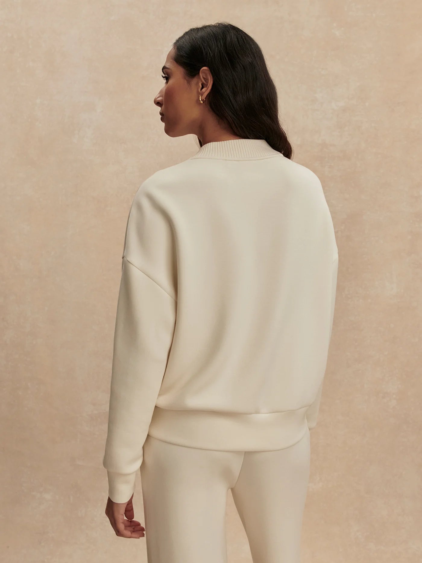 The Reena relaxed sweat top is made from our signature DoubleSoft® fabric with a contrast knitted placket and neckline. This versatile top works well as a springtime layering piece.