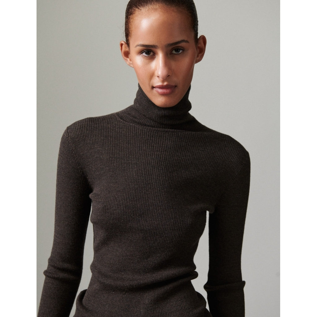 DAY Birger Et Mikkelsen Sierra. An everyday basic thin knit crafted from Merino Wool. Features a roll neck, long sleeves and ribbed detail all over. Perfect for layering and offers a generous amount of stretch.