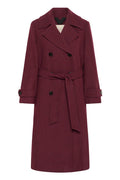 Introducing the Synne coat in rich Tawny Port—a designer piece that transforms your everyday wardrobe. Crafted from premium wool, this double-breasted coat features striking wide lapels and an integrated belt that cinches the waist for an effortlessly polished silhouette. Whether you're heading to the office or an evening event, its timeless design and superior construction ensure you'll reach for it season after season. Invest in a coat that delivers both warmth and undeniable sophistication.