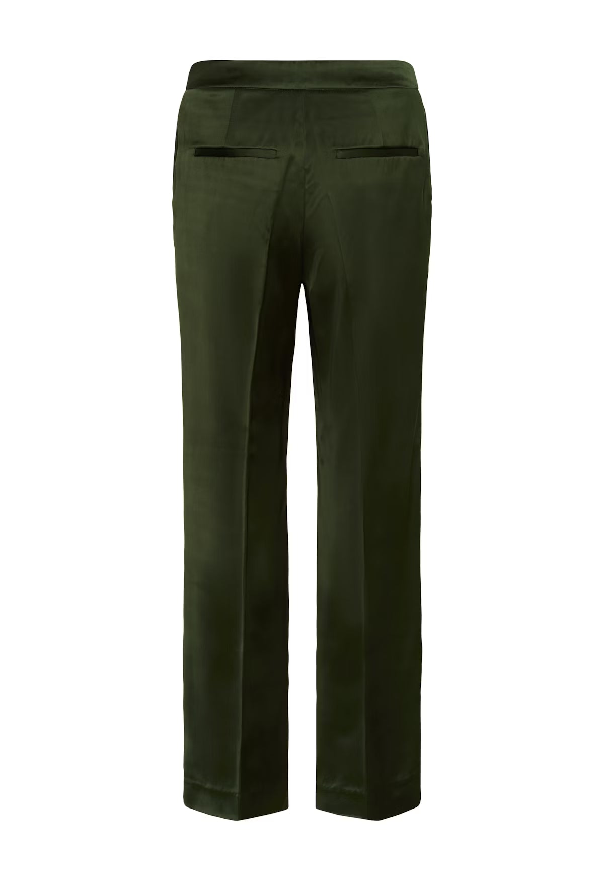 Discover understated elegance with the Uma Rosin Green Trousers, a wardrobe essential that effortlessly elevates any ensemble. Crafted from luxurious shiny olive green fabric, these straight-leg trousers feature precisely pressed creases that exude sophistication. The lightweight material drapes with fluid grace while maintaining a soft, comfortable feel against your skin. Perfect for creating polished looks, pair them with a crisp shirt or coordinating top to unlock endless styling possibilities. At 174 cm, our model wears a size 36, showcasing the flattering fit these trousers deliver. Invest in timeless style that transitions seamlessly from office to evening.