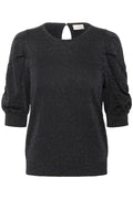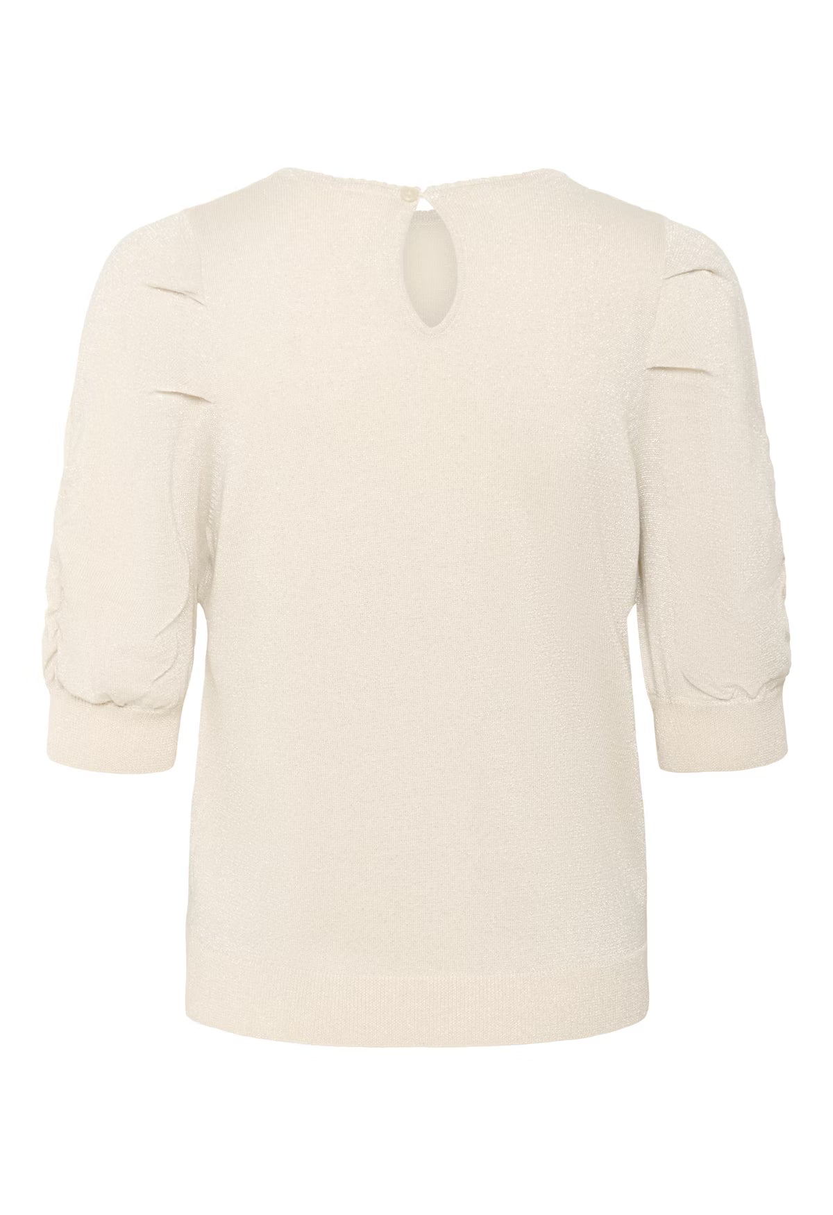 Introducing the Varaia Whitecap Pullover a designer piece that effortlessly elevates your wardrobe. This short-sleeved knitted top showcases an understated shimmer and graceful gathered shoulders that add dimension and movement. Crafted from soft, lightweight fabric, it delivers all-day comfort without compromising on style. Whether you're dressing for the office or a special evening out, this versatile cream lurex pullover pairs beautifully with denim or skirts for a polished, sophisticated finish. Discover the perfect balance of elegance and wearability.