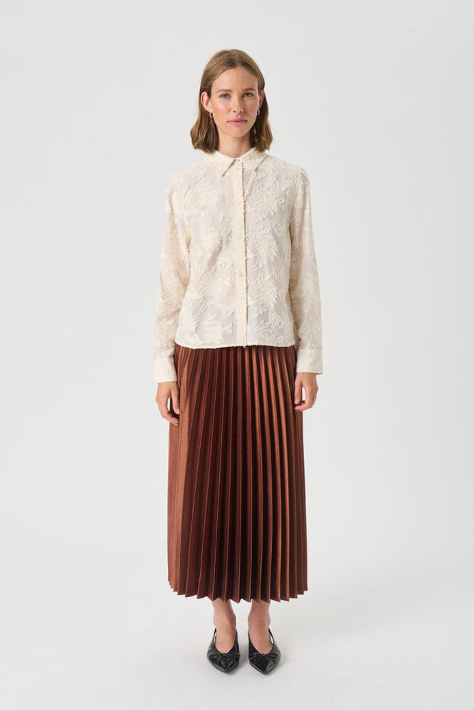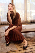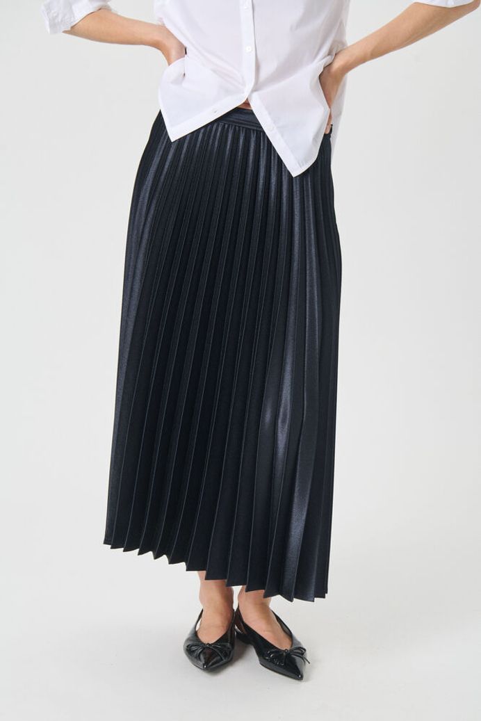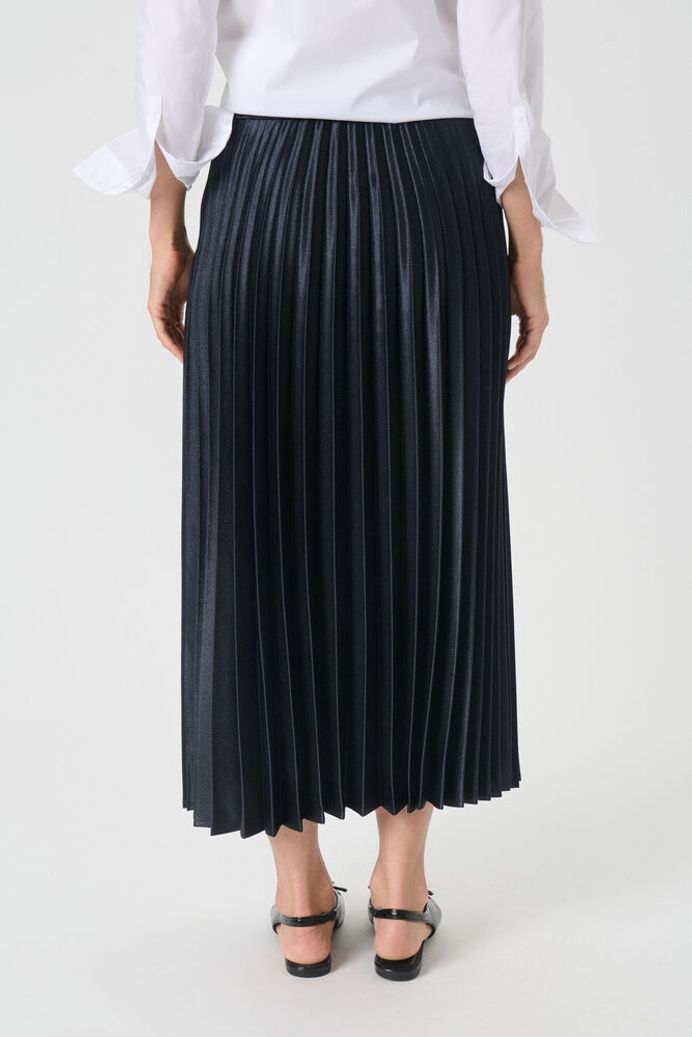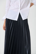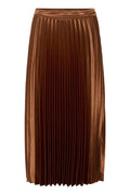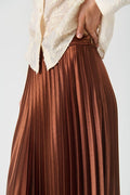 The Violetta Pleated Skirt combines timeless elegance with everyday versatility. Crafted in your choice of rich navy or warm copper brown, this midi skirt features delicate pleats and a subtle sheen that catches the light beautifully. The elastic waistband ensures comfort without compromising on style, allowing effortless movement throughout your day. Its flattering silhouette transitions seamlessly from casual to occasion wear pair with a crisp shirt for polished sophistication or a soft knit for relaxed refinement. A wardrobe essential that delivers both grace and practicality.